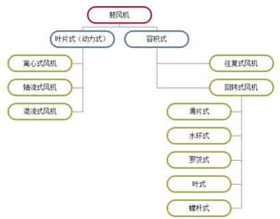 離心式風機—氣流軸向駛入風機葉輪后,在離心力作用下被壓縮,主要沿徑向流動。