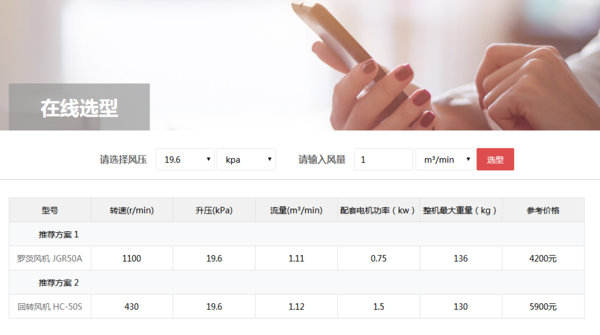 此外,還可以通過(guò)風(fēng)機(jī)選型系統(tǒng)查詢回轉(zhuǎn)風(fēng)機(jī)價(jià)格,如下圖客戶僅需輸入風(fēng)量、選擇風(fēng)壓,就可以方便、快速、準(zhǔn)確、可靠地進(jìn)行羅茨鼓風(fēng)機(jī)、回轉(zhuǎn)式鼓風(fēng)機(jī)等各類(lèi)容積式風(fēng)機(jī)的選型和價(jià)格查詢工作。風(fēng)機(jī)選型系統(tǒng)地址:http://m.xenicalnew.com/search.php
